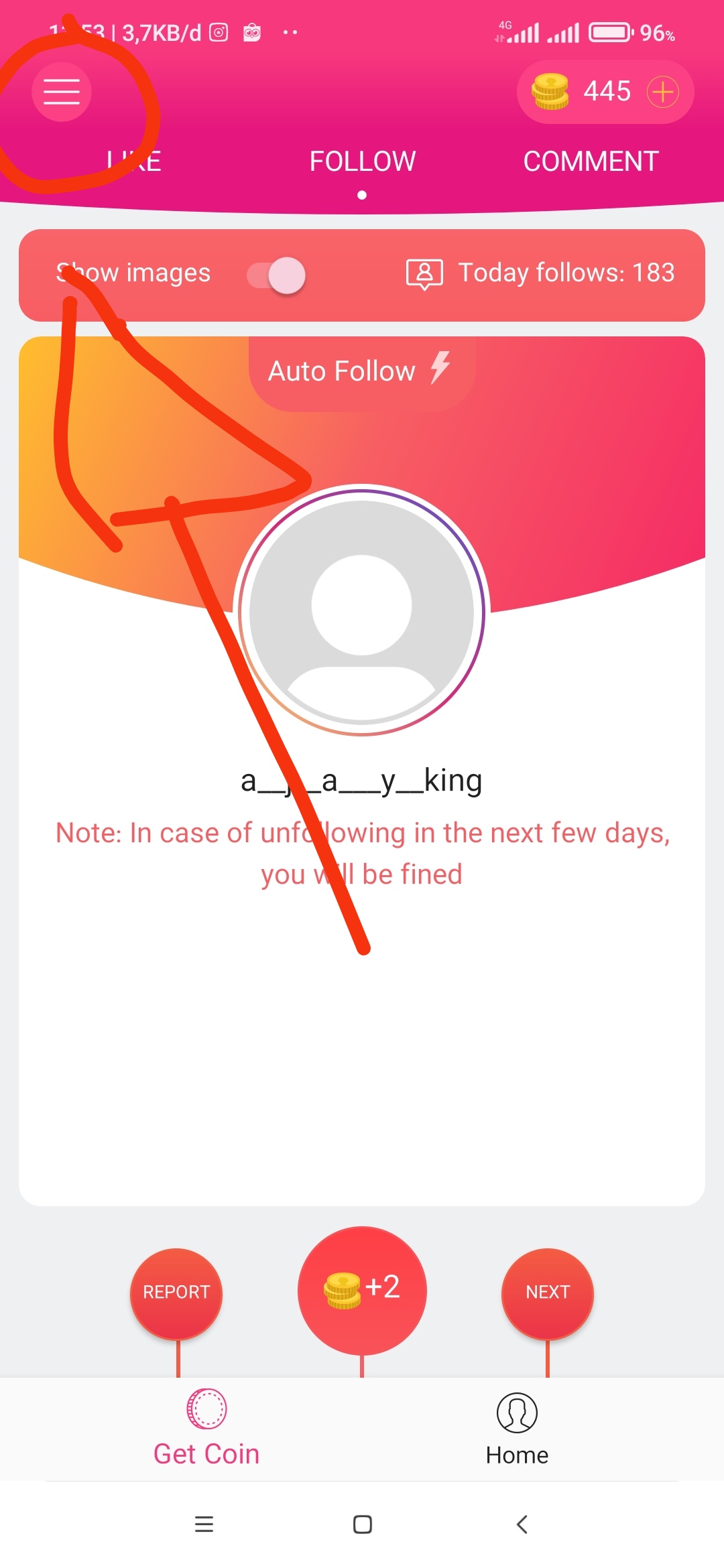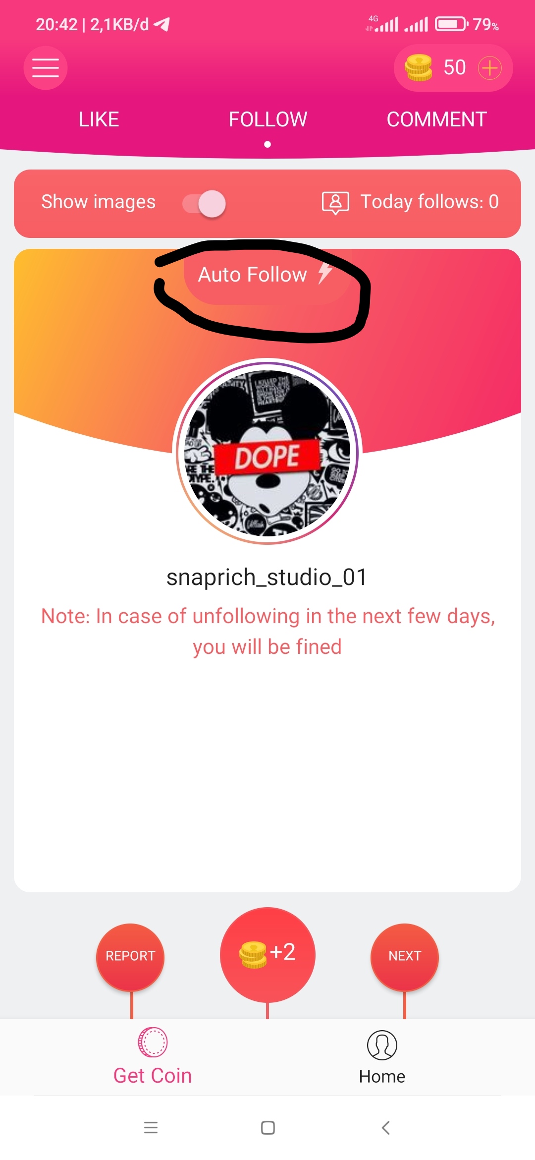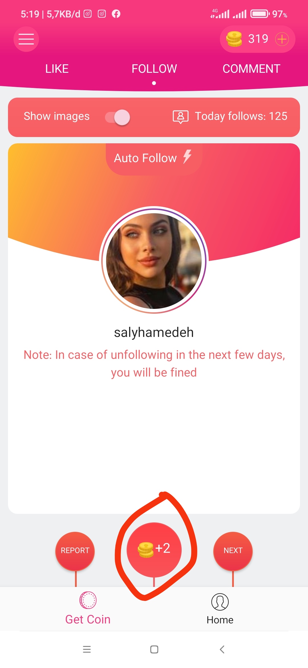 -kalian juga bisa follow secara manual lho kalian tinggal kembali ke halaman utama lalu klik tombol koin
