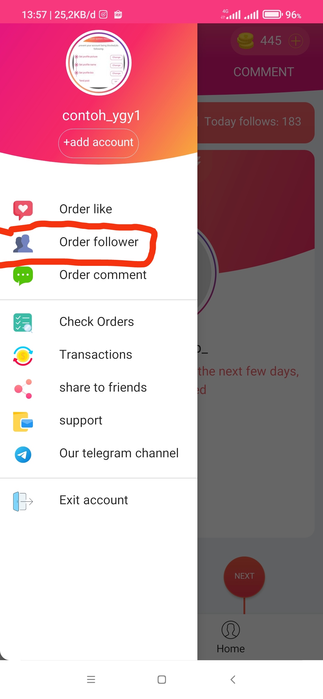 -jika sudah kalian pilih order follower