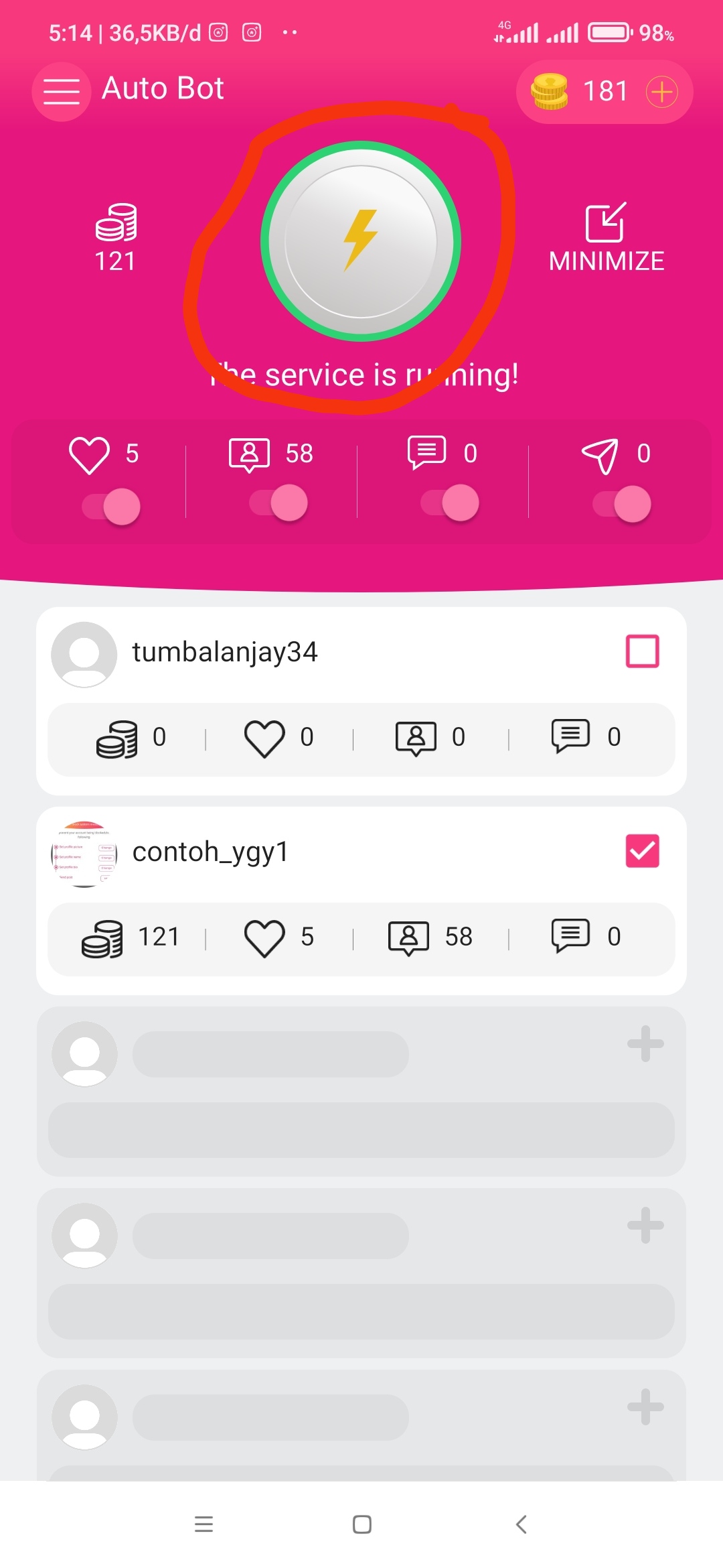-jika sudah dia akan otomatis mencari koin untuk kalian beli followers cuy jadi kalian bisa buka aplikasi lain tetapi aplikasi instaup nya jangan di relog karena jika kaliam relog aplikasi instaup ini otomatis akan berhenti bekerja jadi kalian harus tetep menjalankan aplikasi nya